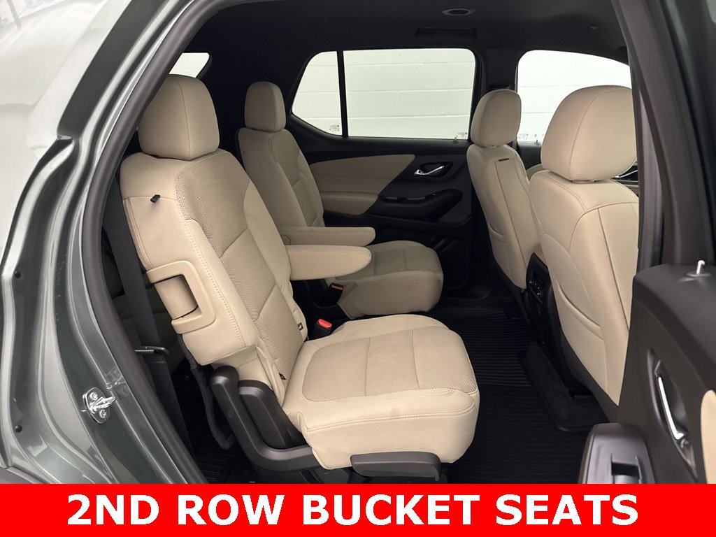 Backup Camera, Remote Start, Bluetooth Connectivity, Forward Collision Alert, Lane Departure Warning, Lane Keep Assist, Side Blind Zone Alert, 2nd Row Bucket Seats, Heated Seats, Power Liftgate, Rear Park Assist. Chevrolet 2022 Traverse Silver Sage Metallic 3.6L V6 SIDI VVT