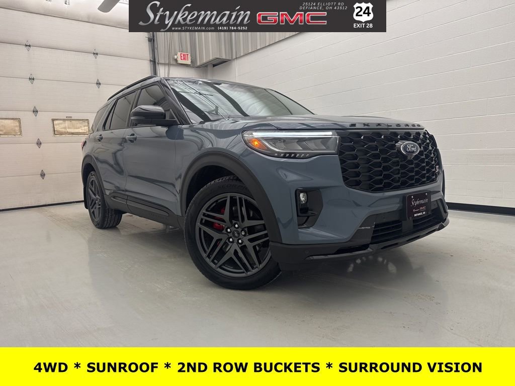 Backup Camera, Remote Start, Bluetooth Connectivity, Moonroof Sunroof, Navigation GPS Nav, Forward Collision Alert, Lane Keep Assist, Side Blind Zone Alert, Surround Vision, Power Liftgate, Trailering Package, 400 hp, 415 lb-ft. Torque, Bluecruise Capable, B&O Stereo. Ford 2025 Explorer Vapor Blue Metallic 3.0L EcoBoost V6