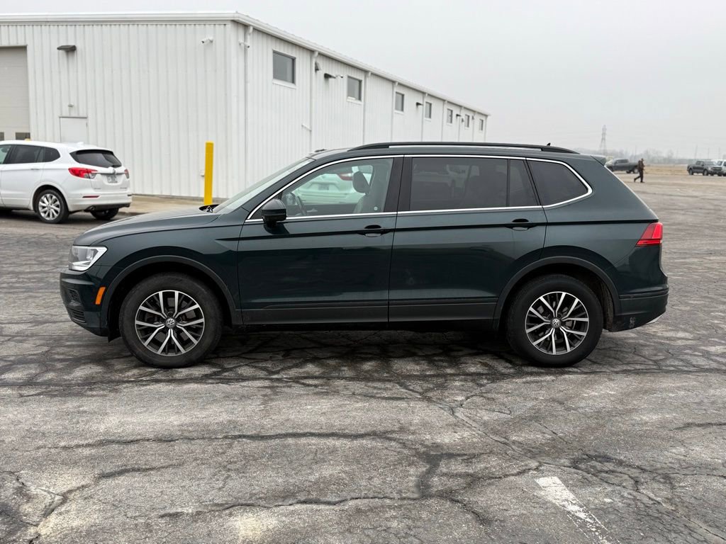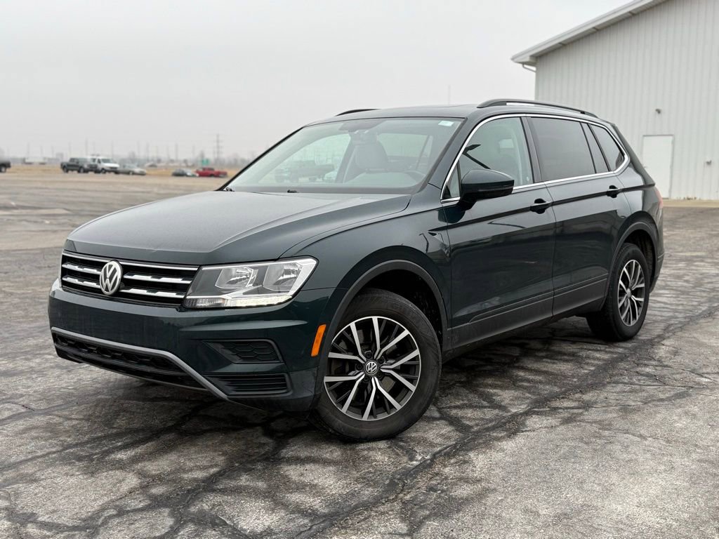 ABS brakes, Alloy wheels, Compass, Electronic Stability Control, Front dual zone A/C, Heated door mirrors, Heated Front Comfort Seats, Heated front seats, Illuminated entry, Low tire pressure warning, Remote keyless entry, Traction control. Volkswagen 2019 Tiguan Moss Green 2.0L TSI DOHC